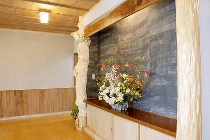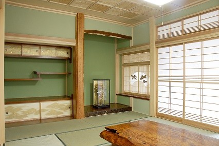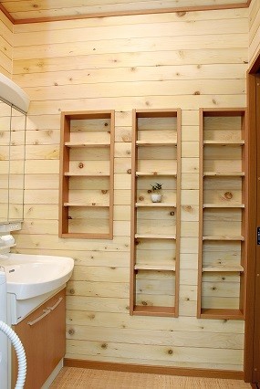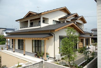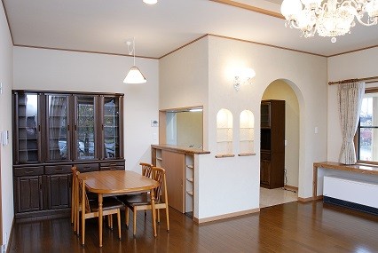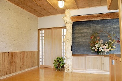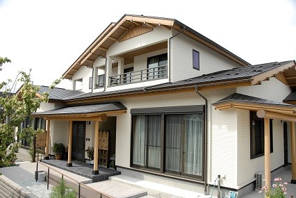 福島県会津若松市 丸!にこだわりました 2023年12月6日2015年7月24日 家族構成 2世帯 建物構造 スーパーウォール工法2階建 延床面積 281.34㎡ 84.93坪 坪単価 万円/坪 所在地 福島県会津若松市 丸!!にこだわりました。 矢切も手作りです。 建物の特長 ■自然素材 ■健康 ■高気密・高断熱 ■高耐震 ■電化 ■省エネ ■伝統的な住まい 丸桁・丸柱・丸垂木・丸付母屋 アプローチ・玄関前 屋久杉! 天井は 屋久杉を使ったイナゴ天井! 腰板にも屋久杉! 正面にある柱は以前使用していた床柱(イチョウの木)を再利用! 飾り床 壁には墨を2回にわたり塗り込んだ和紙を使用。 腰板上には上記墨なしの和紙を貼りました。 親世代のLDK 対面式のキッチン。吊戸をなくし、開放感あるキッチン。足腰の負担を軽減する為,座るワゴンの採用。 子世代のLDK こちらは吊戸をもうけ、半独立のような対面式キッチン。床・壁などもあえてかえました。(ブラケット照明・シャンデリア・食器棚・テーブルは以前使用していたもの) 純和風造り 違い棚、書院、雪見障子、格天井。 落ち着きある和風造り。 ICAS工法! 腰板は青森ヒバ(節無・無垢)。クロス下地石膏ボード上にはマイナスイオンを発生させる炭塗料添付。(ICAS工法) 全面! 天井・壁 青森ヒバ(節有・無垢)施工。 壁埋込み棚。棚板も青森ヒバ。小物の収納に・・・。 広い! 広い間口の階段。(柱芯々1365㎜)