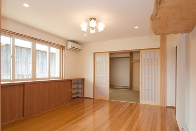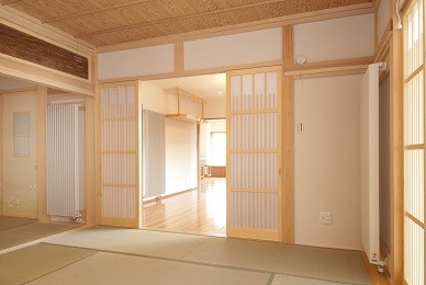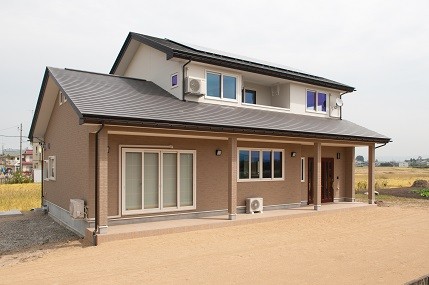 福島県河沼郡会津坂下町 2023年12月6日2015年7月25日 家族構成 単世帯 建物構造 スーパーウォール工法2階建 延床面積 172.66m2 52.32坪 坪単価 万円/坪 所在地 福島県河沼郡会津坂下町 柱はすべて桧4寸角、土台にはシロアリに強いヒバを使用しています! 建物の特長 ■自然素材 ■高気密・高断熱 ■高耐震 ■太陽光 ■省エネ ダイニングキッチン 玄関を上がれば、すぐにダイニングキッチンになります。 床板には竹無垢板、壁には幻の漆喰を採用しました。 リビング ダイニングキッチン隣の広いリビングです。 窓の高さに合わせて収納棚を造りました。 和室 リビングから続く二間の本格的日本間です。 壁は珪藻土を使用しています。 和室 床柱に槐(えんじゅ)や日光杉、屋久杉のランマを採用しました。 洗面所 広めの廊下と階段です。 廊下にもヒートポンプ式温水パネルヒーターを設け家中をあたたかくしました。 廊下・階段 洗面所にもパネルヒーターを設置しました。 子供部屋 小屋裏収納付きです。 可動間仕切りを設け、将来部屋を分けられるようにしました。 寝室~ウォークインクローゼット 床から天井まで使った大きな棚を造りました。 段の高さが調節できます。