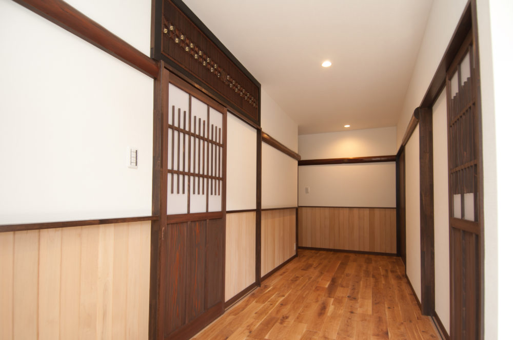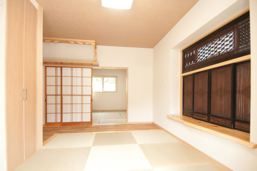 古材・・・再生 2023年12月6日2018年10月31日 家族構成 6人 建物構造 木造軸組SW工法 延床面積 171㎡ 約51坪 坪単価 50万~60万以内 所在地 会津若松市大戸町 長期優良住宅 住宅性能も抜群です。北海道基準を超えています。 建物の特長 お施主様こだわりの旧家で使用していた建具や梁、欄間 等 新築に融合させました。 玄関ホール 欄間・長押は旧家のもの 建具は その雰囲気に合わせ造作しました。 LDK 梁の再利用 古材のため強度はありません。ですので 飾りとしての再利用です。 LDK2 欄間の再利用 非常に細かく繊細な桟でしたので取り扱いは大変でした。 和室 大壁和室(柱が見えない)でありながらも和風に見えるようにしました。 旧家で使用していたのは右に見える書院建具と正面に見える雪見障子です。
