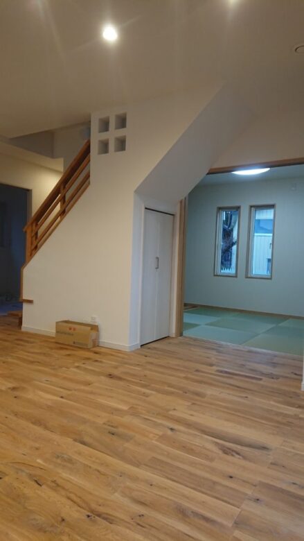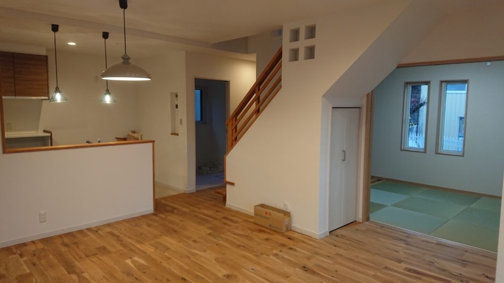 ホワイト×ブラック+木のぬくもり 2023年12月6日2019年2月20日 家族構成 単世帯 建物構造 木造軸組SW工法 延床面積 106㎡ 32坪 坪単価 50~60万 所在地 会津若松市 建物の特長 白の外壁をベースに、一部はブラックの外壁でアクセントを! さらにバルコニーまわりは木目調にし、木のぬくもりをプラスしました。 リビング~和室 リビングの隣には和室があり、扉をオープンにすると、開放的な空間が広がります。 和室 リビング リビング階段は家族と顔を合わせる機会も増え、コミュニケーションも取りやすくなります。 キッチン 2階廊下~階段 シューズクローク
