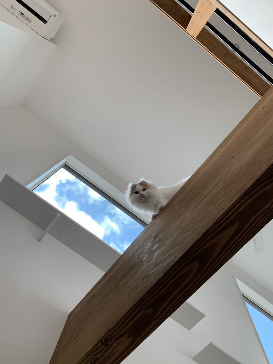 吹抜けにある梁もねこちゃんの遊び場に♪