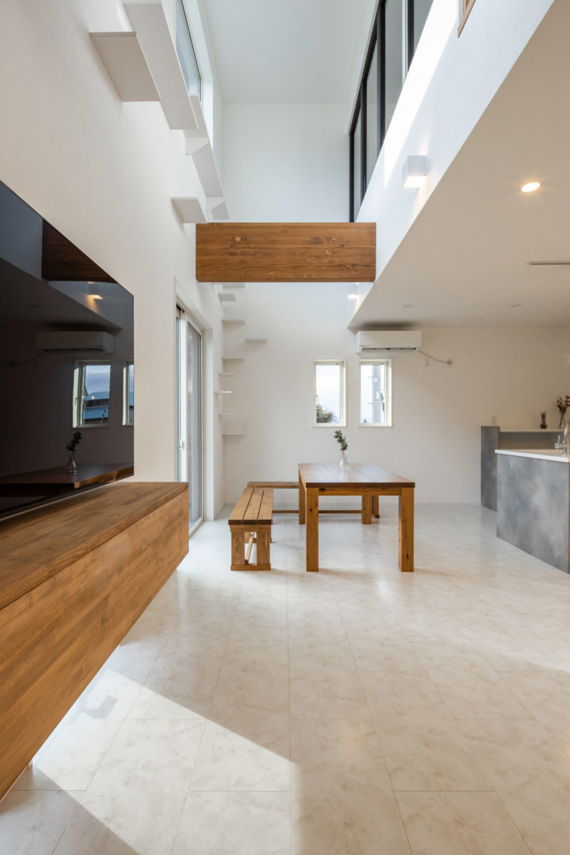 開放的な吹抜けで、家族の気配を感じる間取り