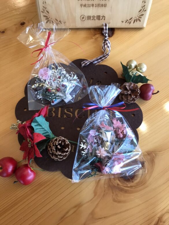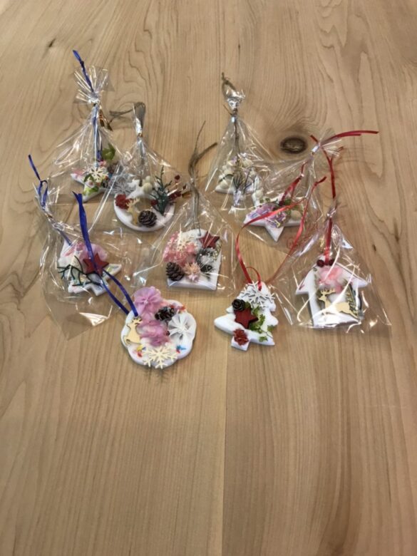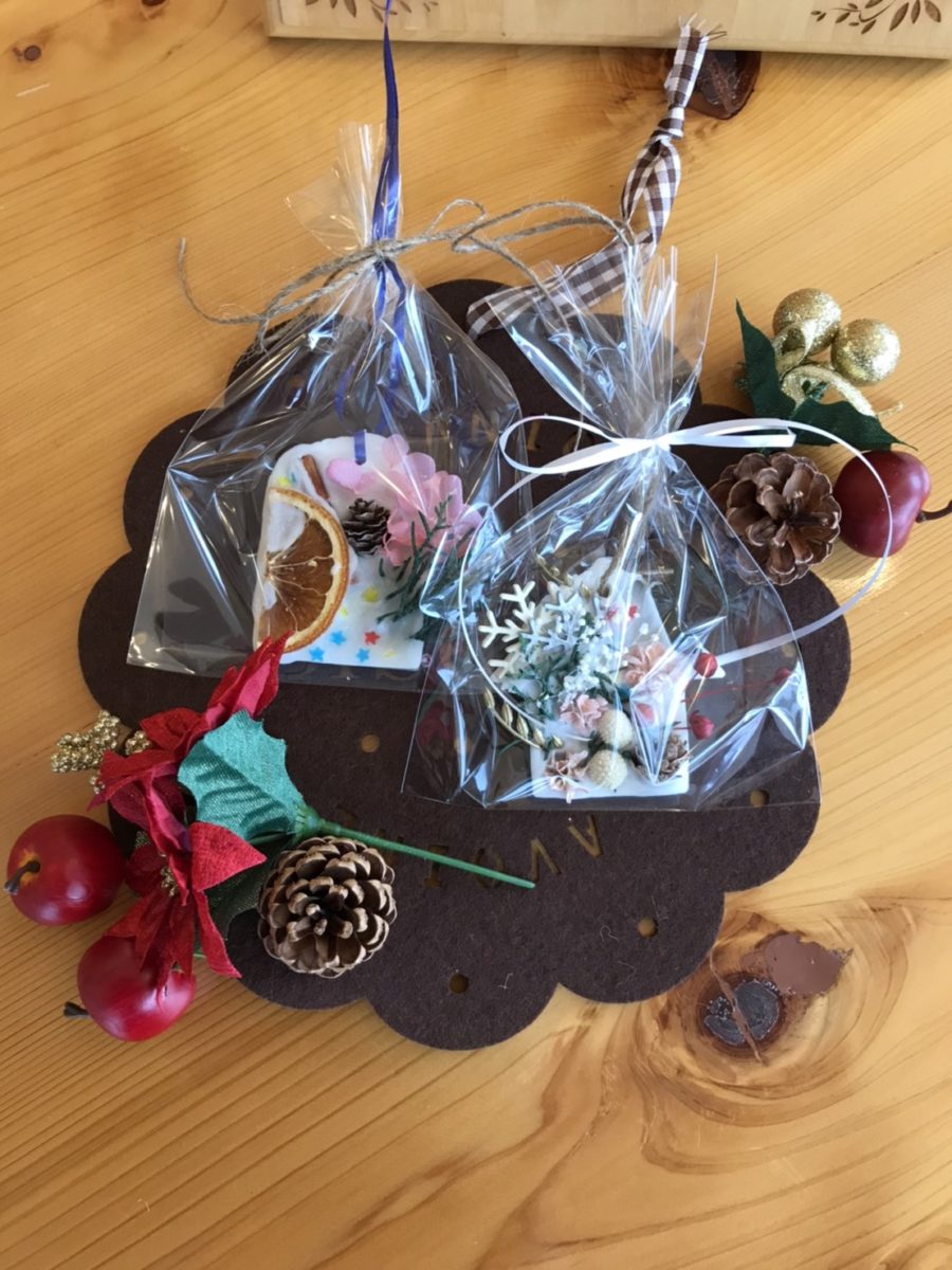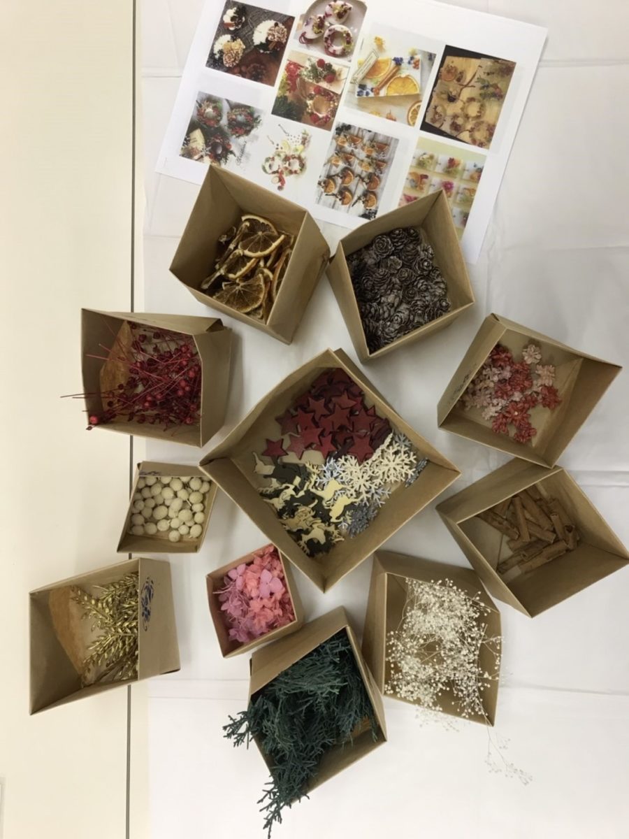 今回はクリスマスに向けて、リースをイメージした材料を選びましたが、初めての方も、お子様にも楽しんで作っていただけました!