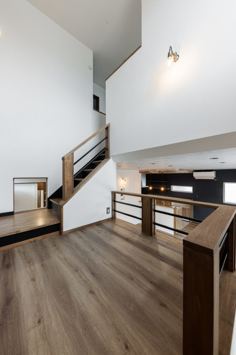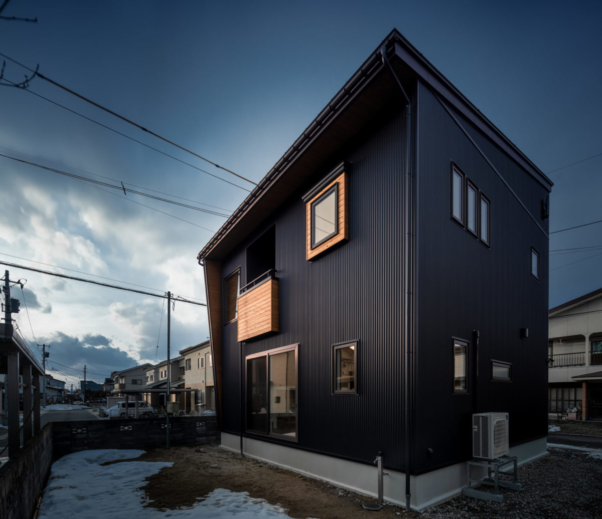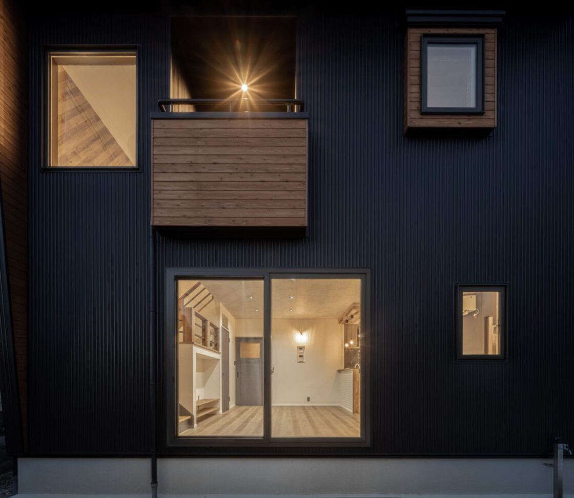 『好き』な物に囲まれる男前な家 2023年12月6日2021年3月9日 家族構成 単世帯 建物構造 木造軸組SW工法 延床面積 102.67㎡ 31.12坪 坪単価 55万~ 所在地 会津若松市 お施主様こだわりの『男前』な内装のお家、できました! 建物の特長 土台・柱全て桧の4寸 北海道基準以上の性能 ( UA値 0.44 Q値 1.36 C値 0.18 ) 認定低炭素住宅 玄関ポーチ 玄関ポーチは斜めの壁と格子でアクセントに。 玄関ホール 左手はシューズクローク。引違いのドアをつけ、出入りも目隠しにも便利です! 右手はキッチンへ続きます。入るとすぐにパントリーがあるので、お買い物帰りもぱっと収納できます。 LDK 約21帖のLDK。TV台は造作です。 右側のドアを開けると、スキップフロア下の収納に続いています。 スキップフロア下収納 スキップフロア下は大容量の収納スペース! 大人が立って歩ける高さなので、荷物の出し入れも楽々! キッチン 木目が印象的なキッチン。天井は一部下がり天井になっています。 奥に見えるのがパントリー。造作の可動棚は高さを自由に変えられてスッキリ収納できます! ダイニングスペース キッチンの隣はダイニングスペース。 こだわりの照明がやさしく食卓を照らします。 壁面収納 トイレの壁面には扉付きの収納を設けました。 トイレットペーパーやちょっとした小物の収納に便利です。 スキップフロアからの眺め 段差により、LDKと緩やかに仕切られたスキップフロア。 開放感がありますが、家族の気配を感じながら過ごせる空間です。 外観 スッキリとスクエアフォルムの外観。 外観 ブラックに木目がアクセント。