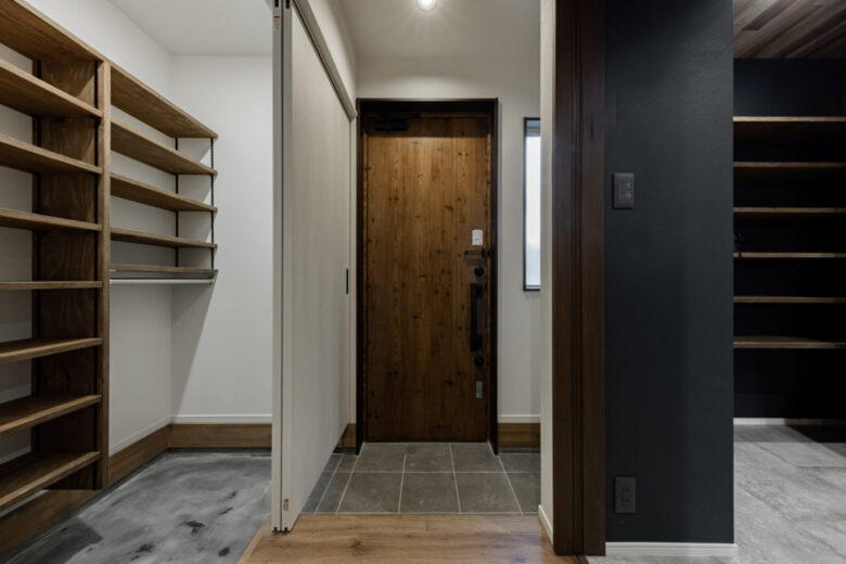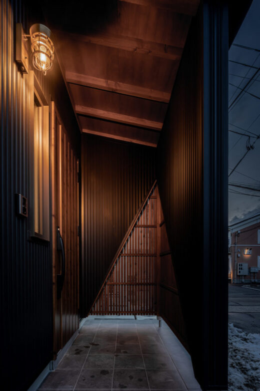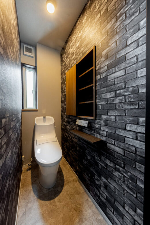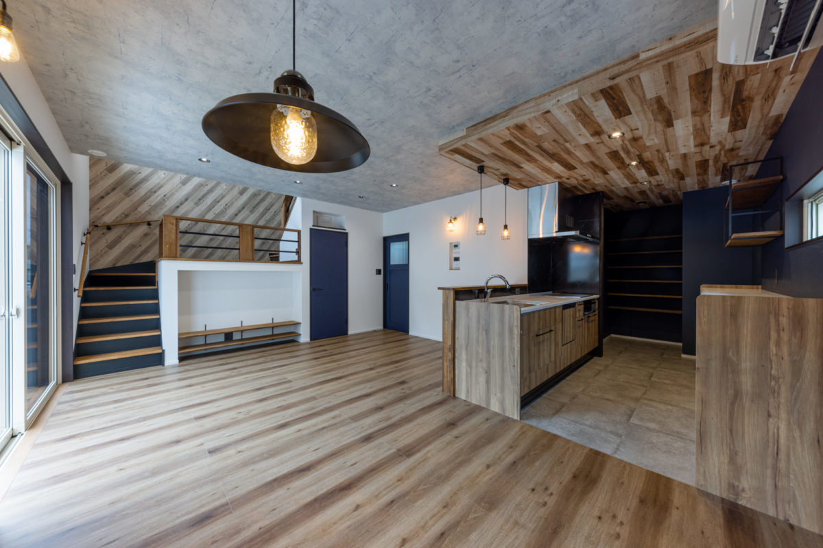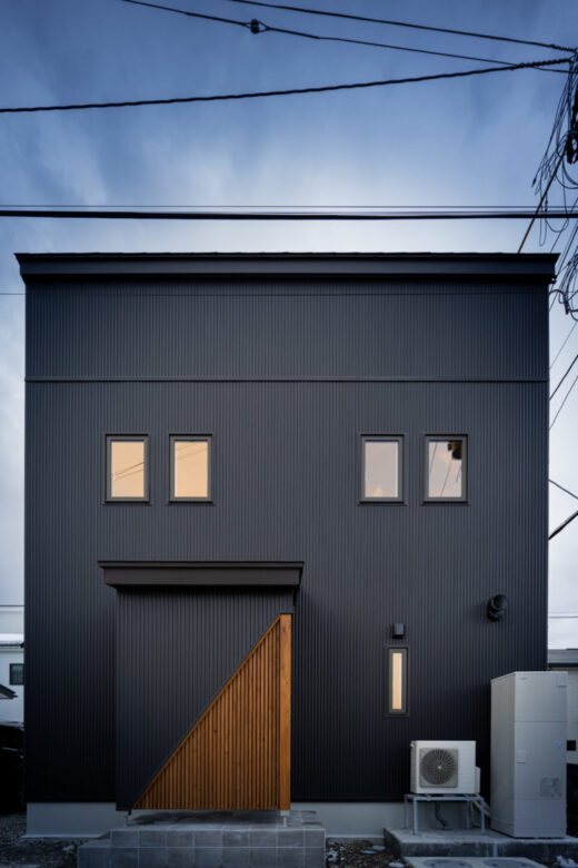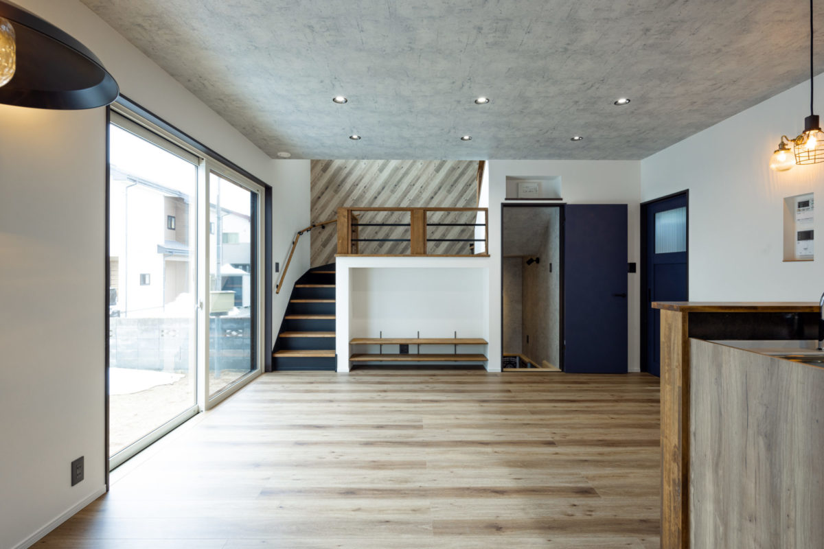 『好き』な物に囲まれる男前な家 2023年12月6日2021年3月9日 家族構成 単世帯 建物構造 木造軸組SW工法 延床面積 102.67㎡ 31.12坪 坪単価 55万~ 所在地 会津若松市 お施主様こだわりの『男前』な内装のお家、できました! 建物の特長 土台・柱全て桧の4寸 北海道基準以上の性能 ( UA値 0.44 Q値 1.36 C値 0.18 ) 認定低炭素住宅 玄関ポーチ 玄関ポーチは斜めの壁と格子でアクセントに。 玄関ホール 左手はシューズクローク。引違いのドアをつけ、出入りも目隠しにも便利です! 右手はキッチンへ続きます。入るとすぐにパントリーがあるので、お買い物帰りもぱっと収納できます。 LDK 約21帖のLDK。TV台は造作です。 右側のドアを開けると、スキップフロア下の収納に続いています。 スキップフロア下収納 スキップフロア下は大容量の収納スペース! 大人が立って歩ける高さなので、荷物の出し入れも楽々! キッチン 木目が印象的なキッチン。天井は一部下がり天井になっています。 奥に見えるのがパントリー。造作の可動棚は高さを自由に変えられてスッキリ収納できます! ダイニングスペース キッチンの隣はダイニングスペース。 こだわりの照明がやさしく食卓を照らします。 壁面収納 トイレの壁面には扉付きの収納を設けました。 トイレットペーパーやちょっとした小物の収納に便利です。 スキップフロアからの眺め 段差により、LDKと緩やかに仕切られたスキップフロア。 開放感がありますが、家族の気配を感じながら過ごせる空間です。 外観 スッキリとスクエアフォルムの外観。 外観 ブラックに木目がアクセント。