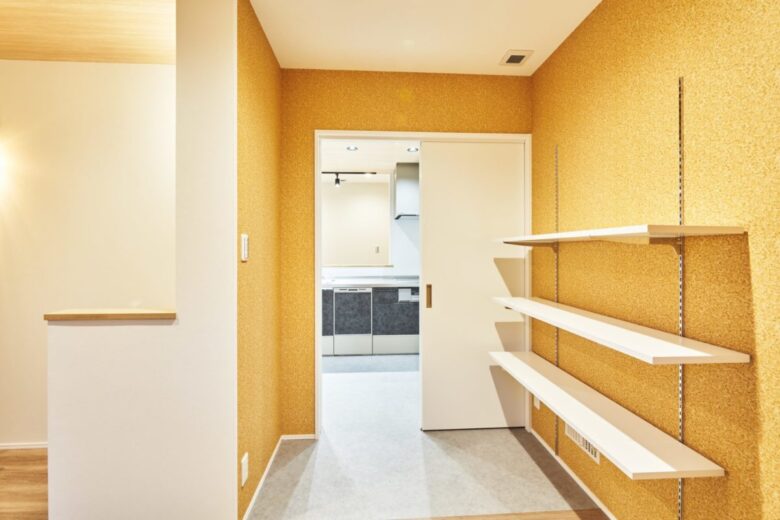 右側(写真奥)にはパントリーを設け、買いもの帰りもまっすぐ収納可能できちゃいます✼