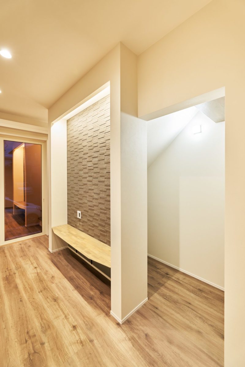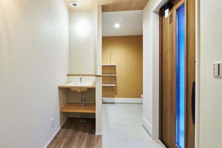 玄関を入ると、正面に手洗い、左右には収納を設けました。
