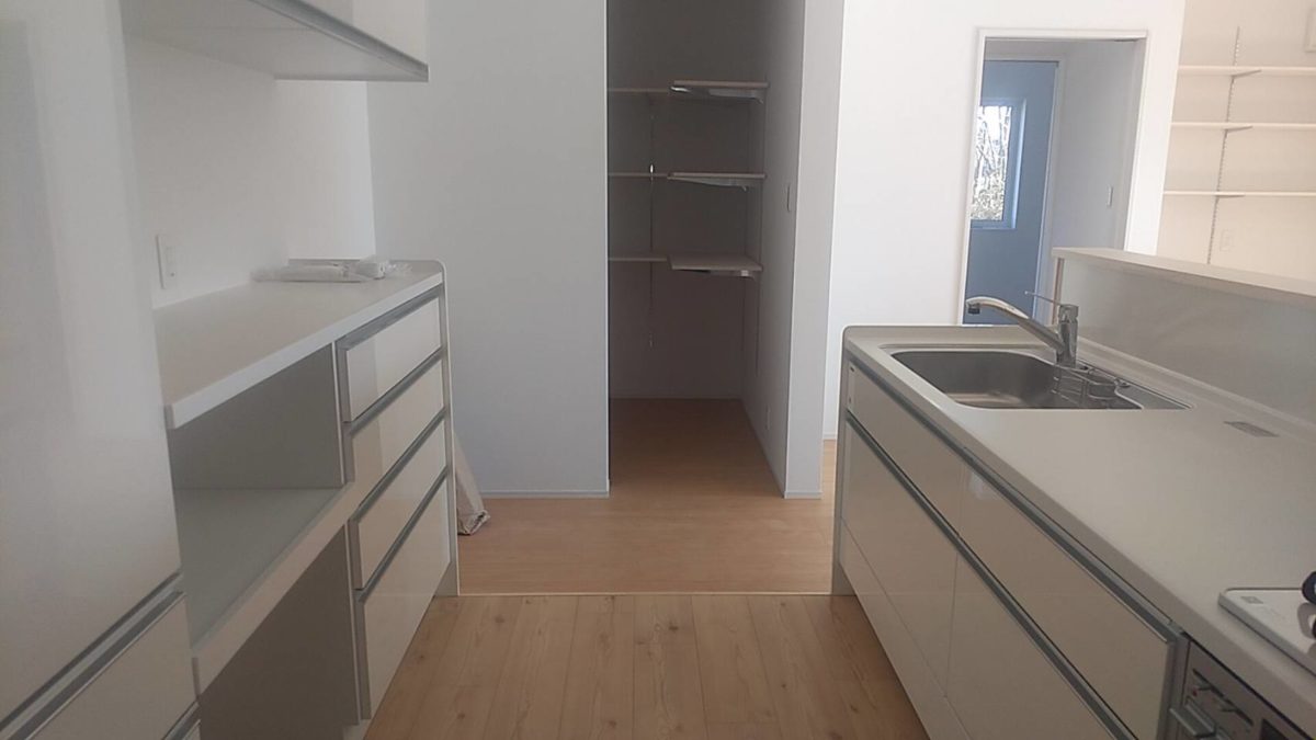 【完成】ネイビー×ブラウンの平屋のお家 2023年12月6日2022年12月19日 土台・柱全て桧の4寸角 長期優良住宅 ネイビー×ブラウンの平屋のお家お引渡し完了いたしました! 全体をネイビーでまとめて木目調のブラウンでアクセントを 約22帖の広々としたLDK 回遊できるキッチン 奥に見えるのは玄関ホール➔書斎です キッチンの脇にはパントリーを設けました 約4帖のランドリールーム 折り畳み式のカウンターを採用し、使わない時はスッキリと! ランドリールームの隣には約6帖のファミリークローゼット 仕切りと棚を付けて、収納しやすい仕様に