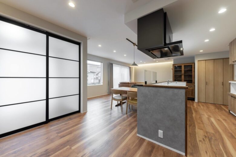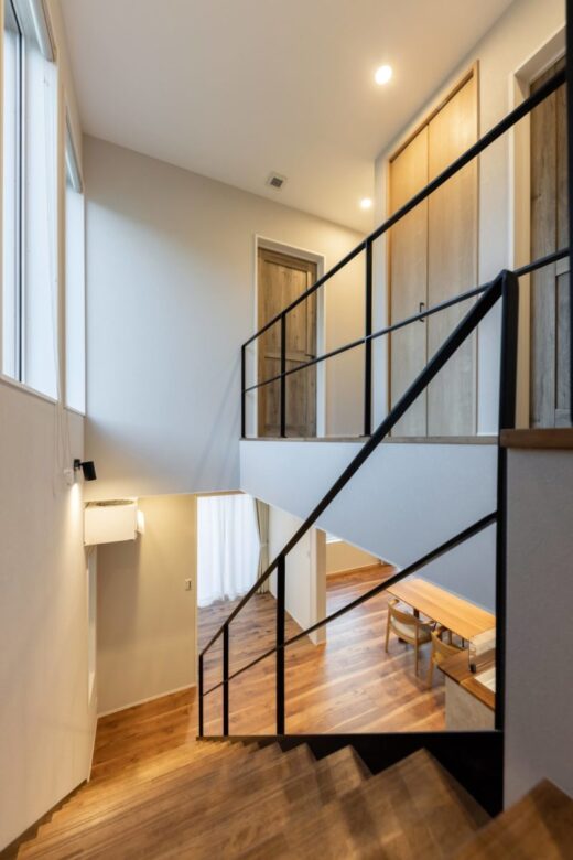 『好き』をちりばめたペレットストーブのあるお家 2023年12月6日2022年12月20日 家族構成 単世帯 建物構造 木造軸組SW工法 延床面積 139.52㎡ 42.28坪 坪単価 所在地 北塩原村 ヘリンボーンの床、スケルトン階段 造作の洗面台や小窓、ペレットストーブ お気に入りの家具など 『好き』に囲まれるお家できました! 建物の特長 土台・柱、全て桧の4寸角 北海道基準以上の性能(C値0.20 UA値0.38 Q値1.39) 長期優良住宅 玄関 ヘリンボーンが印象的な玄関 右はリビング、左はシューズクローク➔ ➔水廻りへと続き帰宅後の動線もスムーズです LDK-1 アイランドッキッチンを中心にした約27帖のLDK シンプルな白い壁紙の中にブラックの建具と階段で引き締め こだわりの家具が際立つ空間に仕上がりました LDK-2 ペレットストーブのあるリビング 日だまりのようなポカポカとした暖かさにつつまれます 水廻り 一直線にまとめられた水廻り キッチン中心に回遊できて 家事のしやすい動線です 造作洗面台 色合いにもこだわった造作の洗面台の先は シューズクローク➔玄関へと続きます ランドリースペース リビングに一角に設けた約3帖のランドリースペース 扉を閉めれば生活感を感じさせずスッキリとした空間に 寝室 約10帖の寝室にはL型カウンターを造作 約7帖のWICに設けた本棚や木製小窓も造作です 生活に合わせて収納の仕方もアレンジできる広々空間です トイレ 目を引くアクセントクロスがあるのは2階トイレ 照明にもこだわりお気に入りの空間に! 階段 採光や風通しにも優れたスケルトン階段 リビング階段でも圧迫感がなく 空間に広がりを感じさせます 外観 縦張り横張りで異なるグレーがミックスされ 立体感のある外壁に ブラウンのポーチが目を引く外観 優しく光を通すガラスブロックがポイントです