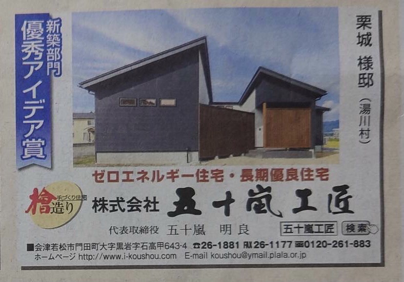 新築部門 優秀アイデア賞 ( 湯川村 栗城様邸 )