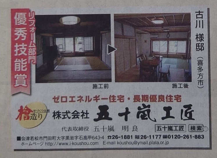 リフォーム部門 優秀技能賞 ( 喜多方市 古川様邸 )