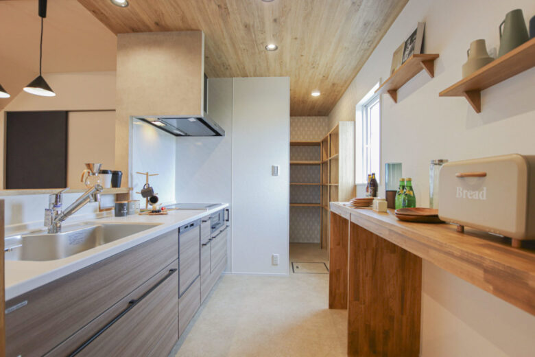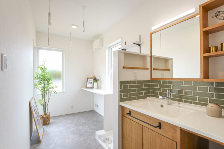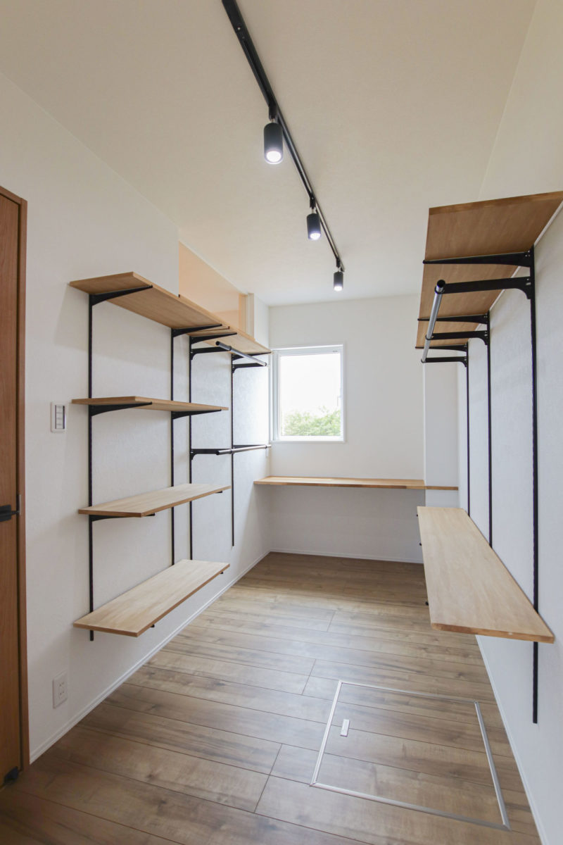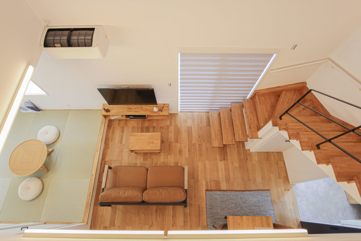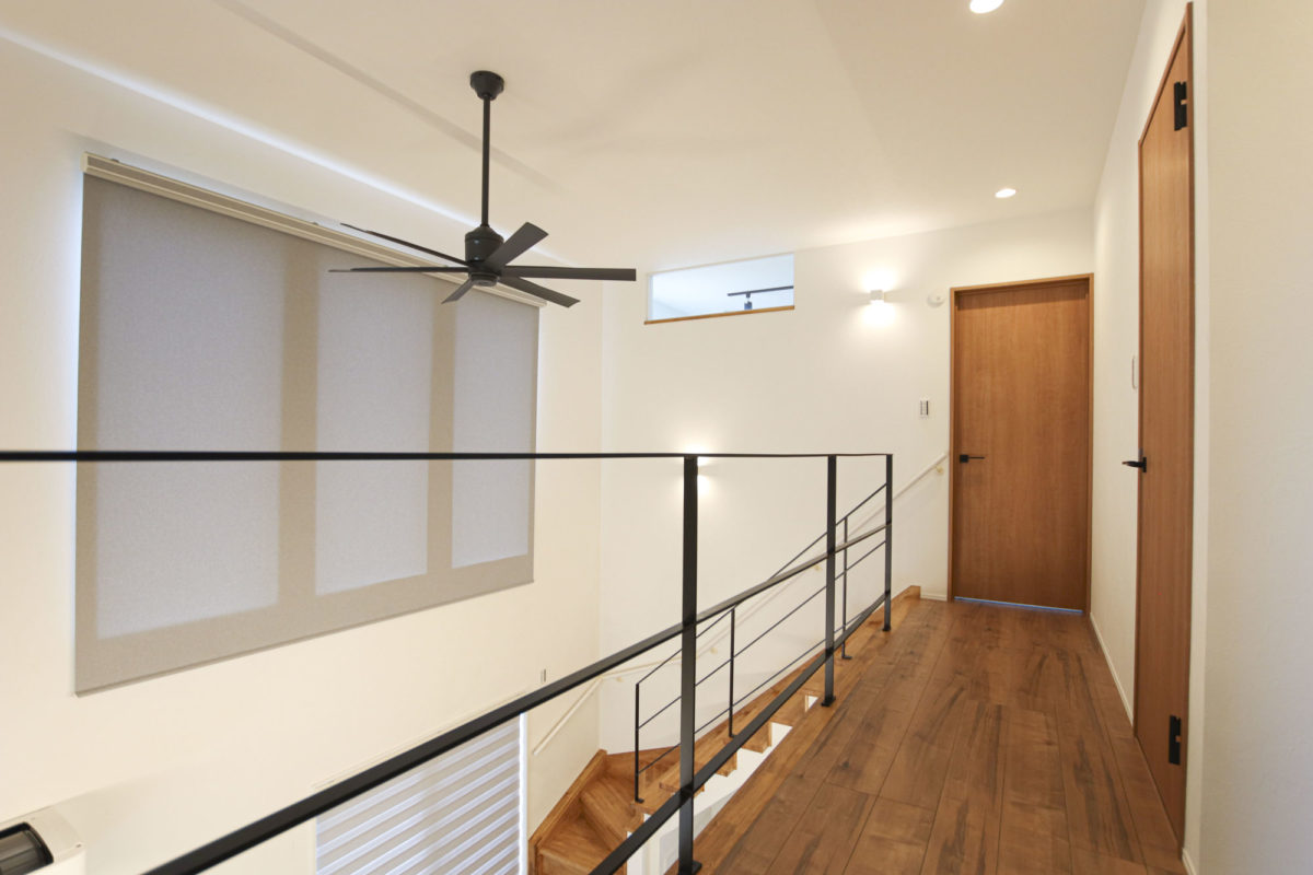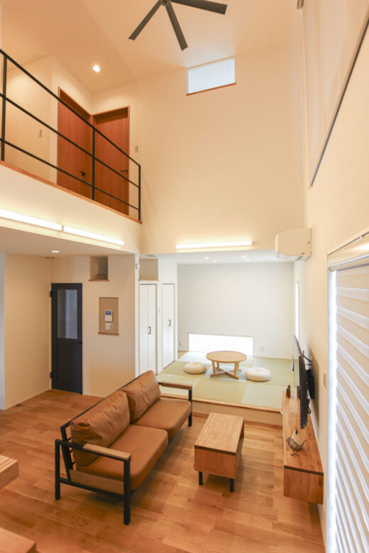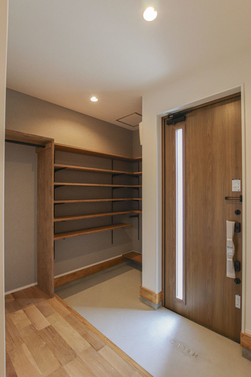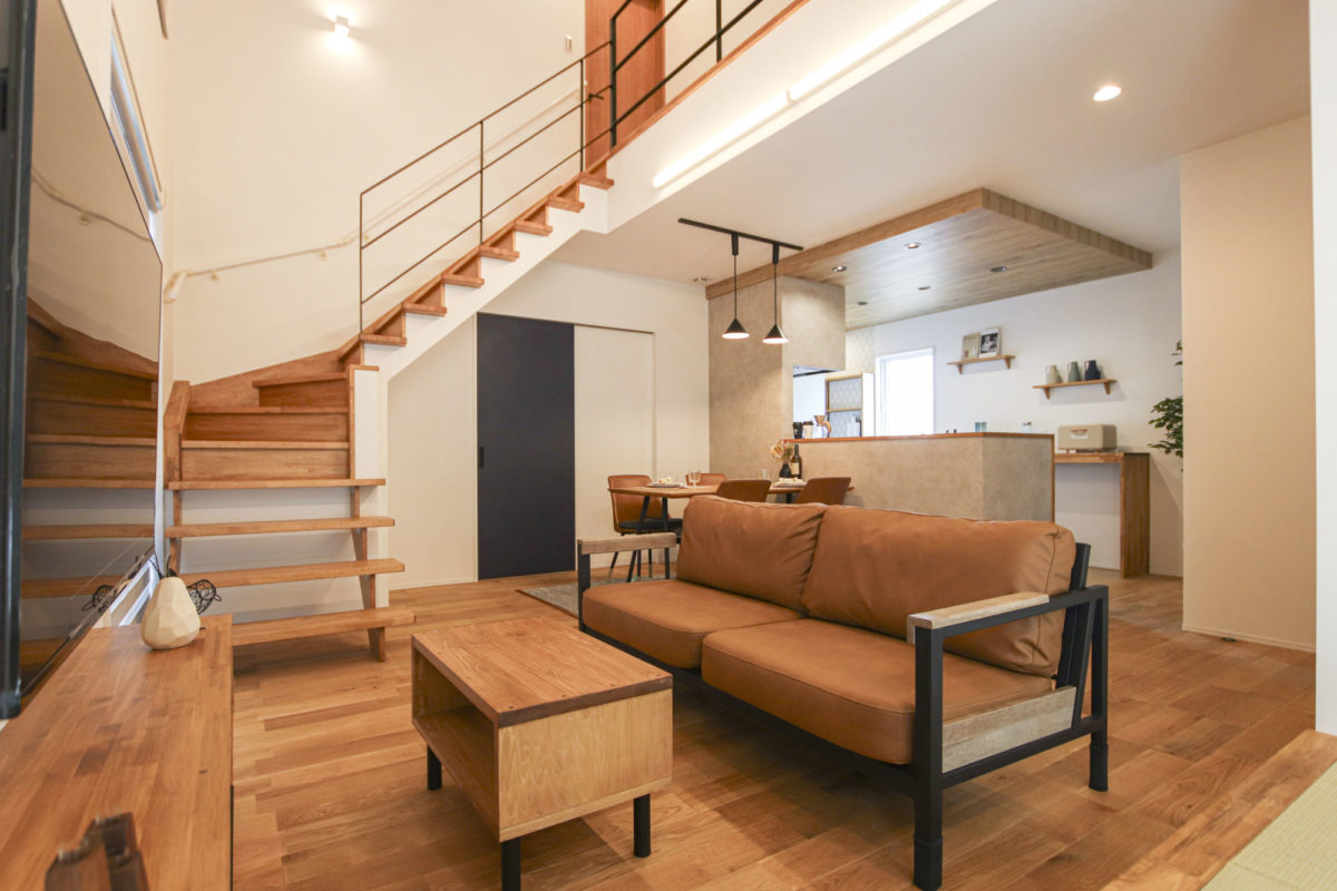 インダストリアルテイストの家 2023年12月6日2023年8月21日 家族構成 単世帯 建物構造 木造軸組SW工法 延床面積 107.02㎡ 32.37坪 坪単価 所在地 喜多方市 グレー×ブラウン×ブラックを基調とした、 吹抜けのある、ナチュラル&カッコイイお家できました! 建物の特長 北海道基準以上の性能(C値0.21 UA値0.43) 長期優良住宅 耐震等級3 土台・柱 全て桧 外観 落ち着いたグレーの外観にブラウンがアクセント ブラックで引き締めて大人カッコイイ仕上がりに! 玄関ホール 可動棚とコート掛けを設けたシューズクローク 仕切りを作らず広々とした玄関ホールに 吹抜けのあるL.D.K 上部が吹抜けになっていて、開放的なLDK 床や階段、造作TV台等、ブラウンの色味を合わせ、アクセントにはグレー そこにブラックをプラスしてかっこいい空間に仕上げました! キッチン グレーと木目をアクセントにしたキッチン パントリーの中にも造作の棚を設けて使いやすく! 畳コーナー LDKに併設された約4.5帖の畳コーナーは 小上がりになっており、ソファーに座っている人と 同じ目線で会話ができるのが良いですね! 水廻り グリーンのタイルが印象的な造作洗面台 右手にはバスルーム左手にはランドリールームと 直線的な水廻りで家事動線もスムーズです✼ 2Fホール ブラックアイアンの手すりがカッコイイ2階ホール ドアノブやシーリングファンもブラックで統一し スッキリとした空間に! キッズルーム 普段は扉を開けて広々と使用でき 個室が必要になったらさっと仕切れる 2枚引きのハイドアを設けたキッズルーム WIC 寝室の隣には約4帖のWICを設けました 窓際のカウンターはメイクスペースやちょっとした書斎にも! 可動棚を設け使いやすい配置のWICは廊下側からも出入りできるので ファミリークロークとしても使用可能です 吹抜け 2階ホールから見下ろすLDK どこにいても家族の気配が感じられます