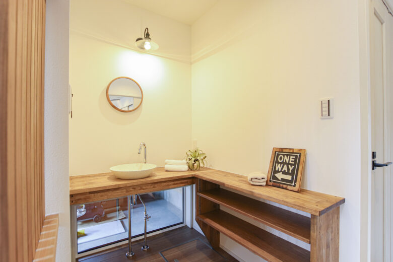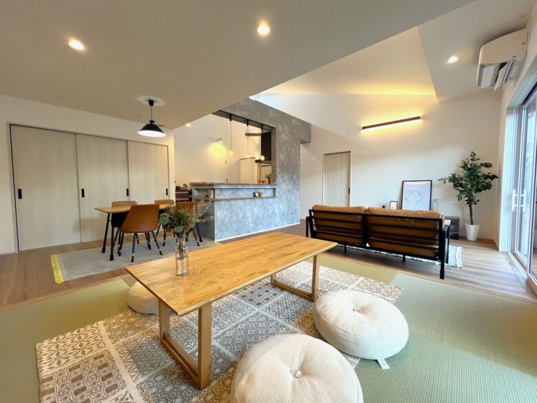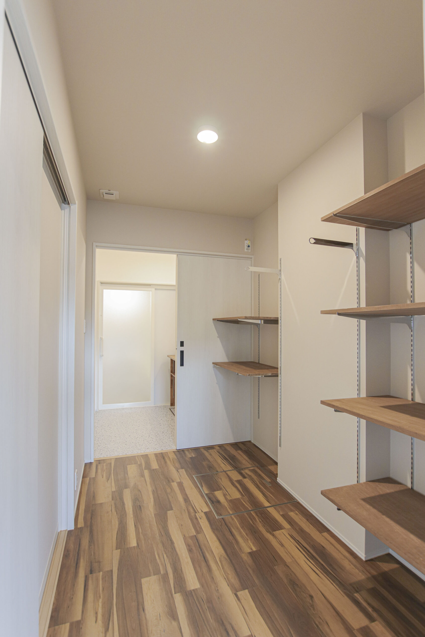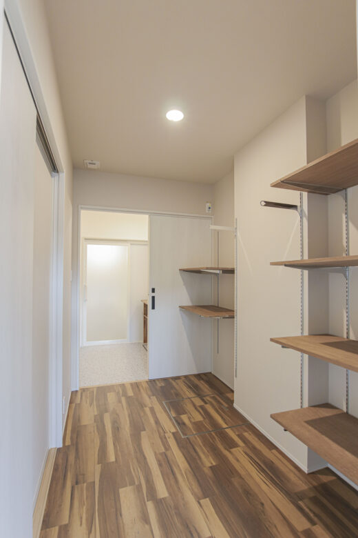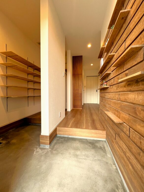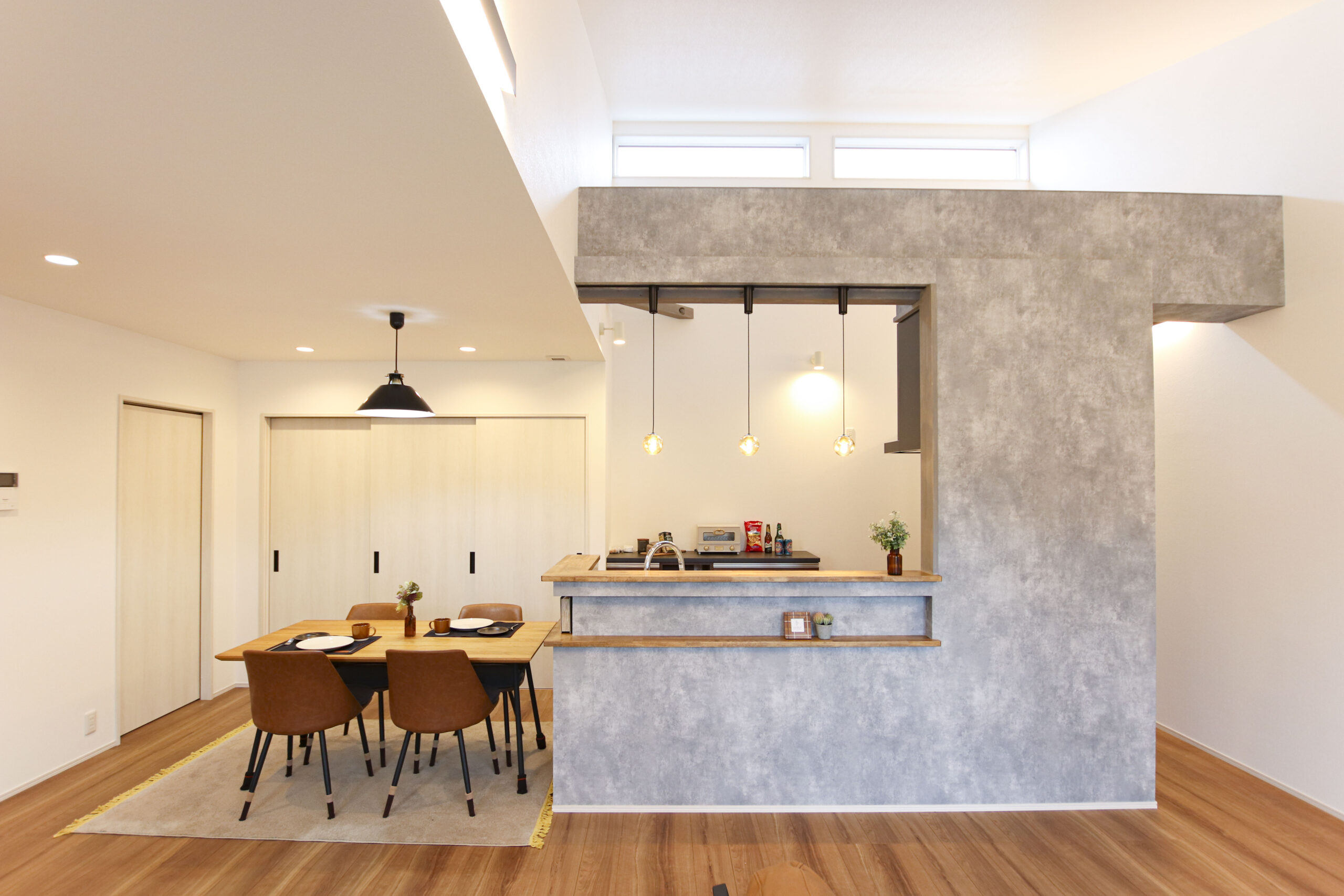インナーガレージ+平屋の住まい 2025年9月11日2024年1月16日 家族構成 単世帯 建物構造 木造軸組SW工法 延床面積 120.07㎡ 36.39坪 坪単価 所在地 会津美里町 車を降りてそのまま室内へ! インナーガレージのある平屋のお家、できました* 建物の特長 北海道基準以上の性能 ( C値0.26 UA値 0.46 ) 長期優良住宅 耐震等級3 土台・柱 全て桧 エントランス 玄関右手には造作の飾り棚 左にはガレージへの入り口と シューズクロークを設けました 普段は左側から出入りし、正面を来客用とすることでいつでもスッキリした玄関を保てます! 造作手洗い 廊下にある格子の先には、造作のL型カウンターと手洗いを設けました。 ただいま手洗いとしても、お出かけ前の身だしなみのチェックにも! LDK 勾配天井で開放的な約18帖のLDK 約5帖の小上がりは、お子様の遊び場としても 寛ぎのスペースとしても◎ ダイニング ダイニングはキッチンと横並びにしてスッキリと! キッチン前にはちょっとした小物が置けるニッチを設けました 写真左側・・3枚引き戸でスッキリとしまえるパントリーで生活感を感じさせない工夫も! キッチン 落ち着いたグレーのアクセントクロスの裏には 鮮やかな赤いキッチンが! キッチンをぐるっと通り抜けでき、そのまま水廻りへ通じる 回遊動線で家事の負担も軽減* 洗面脱衣室 脱衣室も兼ねた洗面室は広めの造作洗面台を採用し収納力もアップ! WIC 脱衣室の隣には約3帖のWICを設けました 洗面脱衣室➯WIC➯ランドリールームと 一直線にまとまっており、 洗う、干す、しまうまでが最短距離で完結できます! ランドリールーム 約3帖の広々ランドリールームで 毎日のお洗濯も安心です! LDK-2 キッチン中心に、ダイニング・小上がり・ソファーと配置されたLDK 家族の気配を感じながらも、それぞれの時間を過ごせます 外観 ブラックと木目を基調とした外観 左手側のインナーガレージから直接室内に出入りできます!