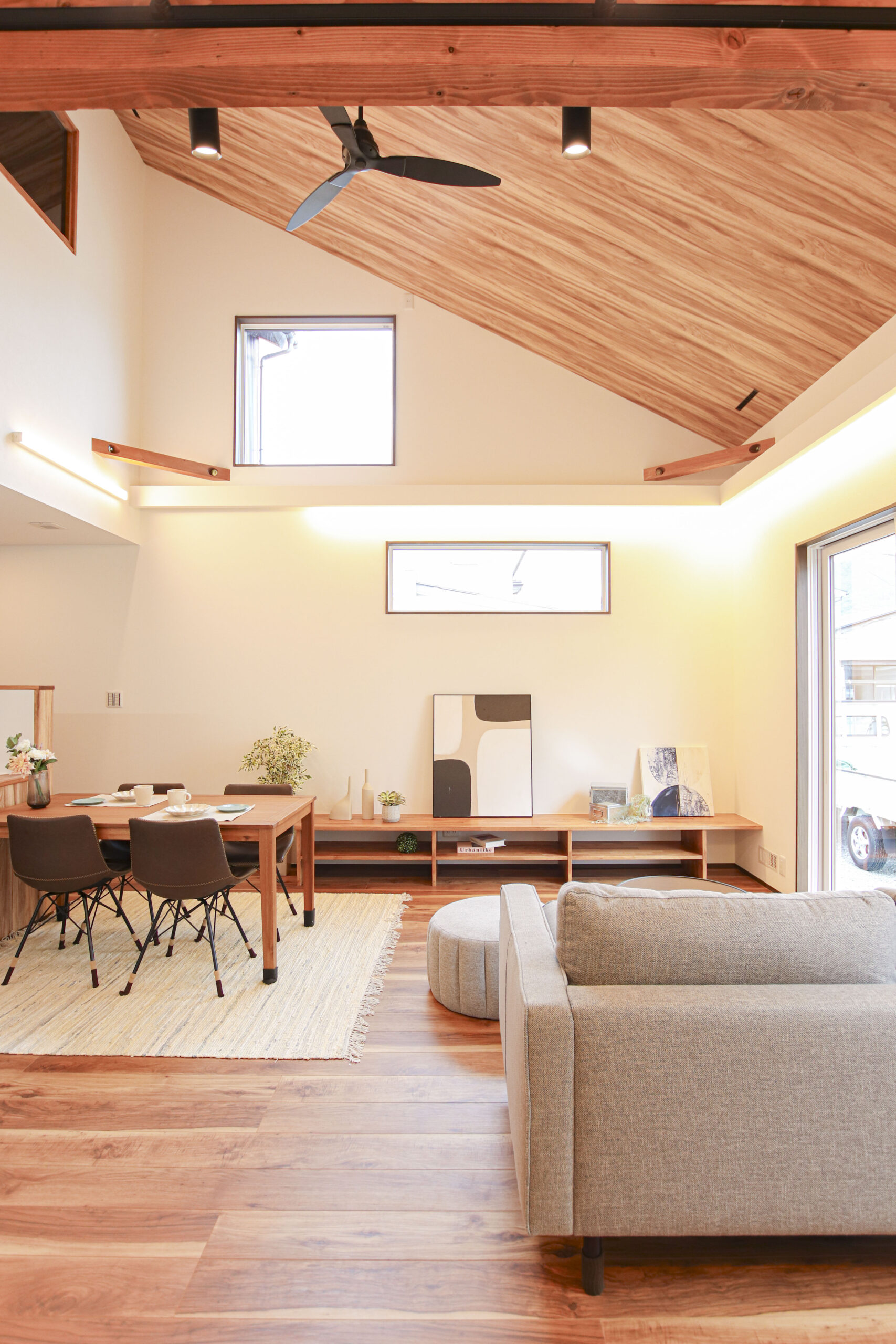 開放感あふれる勾配天井の家