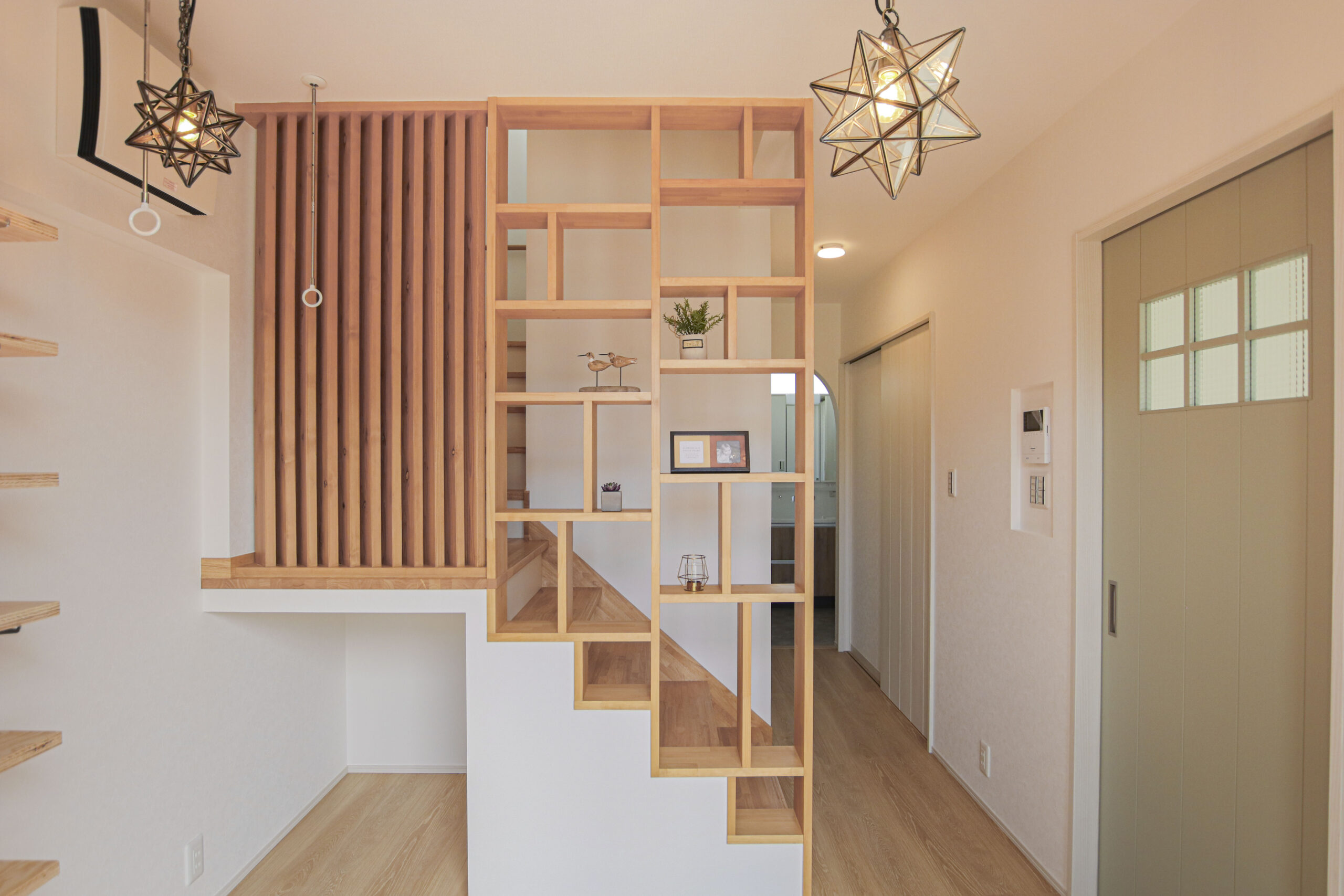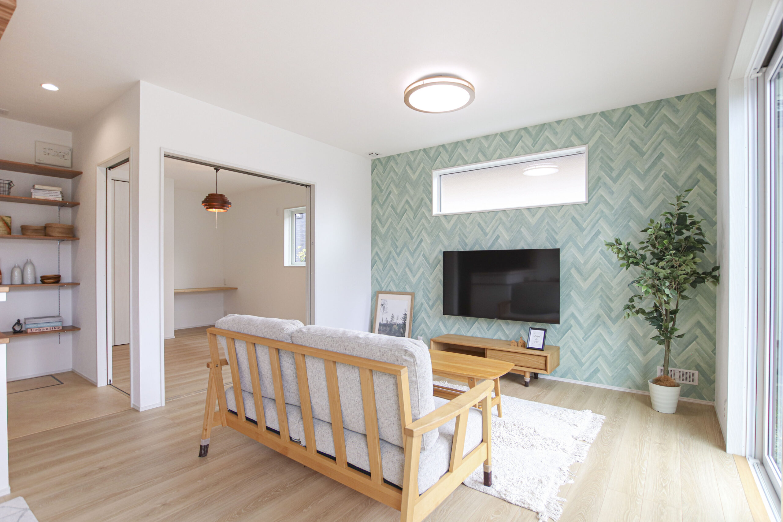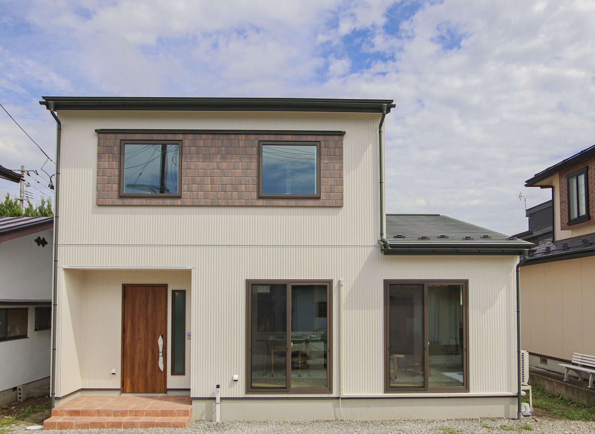 “家族4人にちょうどいい” シンプルスタイルのおうち 2024年9月7日 家族構成 単世帯 建物構造 木造軸組SW工法 延床面積 110.13㎡ 33.38坪 坪単価 所在地 会津若松市 4LD+ファミリークローク×2! 水廻り動線をコンパクトにまとめた ❞家族4人にちょうどいい❞ シンプルスタイルのおうちできました! 建物の特長 北海道基準以上の性能 (UA値 0.41 C値 0.29) 長期優良住宅 耐震等級3 土台・柱 全て桧 エントランス 造作の飾り棚と格子が出迎える玄関ホール 圧迫感を感じさせることなく、プライベート空間から視線を逸らすことができちゃいます お気に入りの小物を飾って楽しめるのもいいですね♪ リビング グリーンのアクセントクロスが爽やかなリビング 左手には約5.3帖の洋室を設けました 1F洋室 お子様の遊び場としてはもちろん、 扉を閉めると個室にできるので ワークスペースや来客用など、多用途に使えるスペースです! ダイニング 建具や照明、アクセントクロスをグリーンでまとめたダイニング 腰壁にはニッチを設け、小物置きに* 水廻り アールが可愛い壁の先には水廻りがまとまっています 洗濯➯浴室乾燥➯約2.5帖のファミリークロークへ! 写真左からファミリークローク➯洗面➯ 脱衣室(洗濯機)➯浴室と続き、洗って~しまうまでが3歩で完結する家事ラク動線です♪ ファミリークローク ブルー系でまとめた約2.5帖のファミリークローク 2Fトイレ 明るいグリーンとヘリンボーン調の床が可愛い2Fトイレ 足元に設けたニッチは、トイレットペーパーや小物置きとしても♪ 寝室 モスグリーンが落ち着いた印象の約7.2帖の寝室 WIC 2F廊下に設けられたオープンタイプのWIC 家族それぞれが必要な時にさっと使えていいですね! 外観 メインはシンプルなホワイト 出窓やドアにはブラウンを 屋根にはグリーンを取り入れ ナチュラルながらも目を引く外観に*